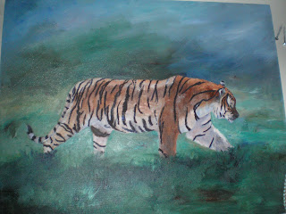 I also touched up the whites and highlights on the tigers fur. Darkened the shadows by glazing. Worked on the stripes more and did that final tweaking.